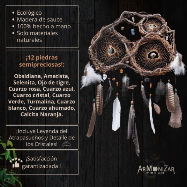 👉Cuanto mayor sea el tamaño del atrapasueños, mayor será la cantidad y tamaño de piedras, plumas y adornos.